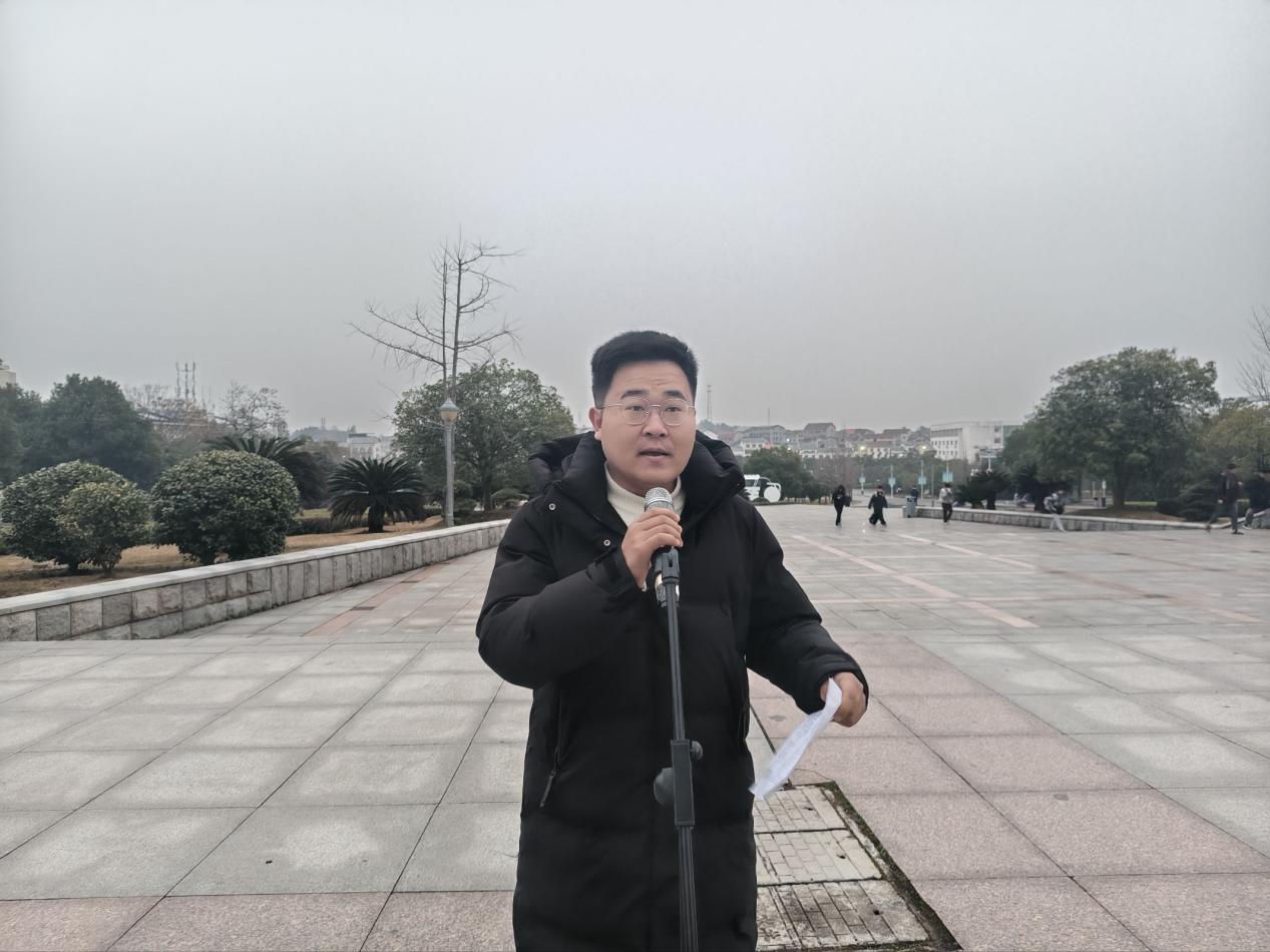 本科生代表、国家奖学金获得者黄胤彰同学作国旗下的讲话,他结合自身专业学习与科创实践经历,分享了个人成长的“行动三部曲”,鼓励同学们“做,才有答案”,用实实在在的行动去追寻答案、实现价值。