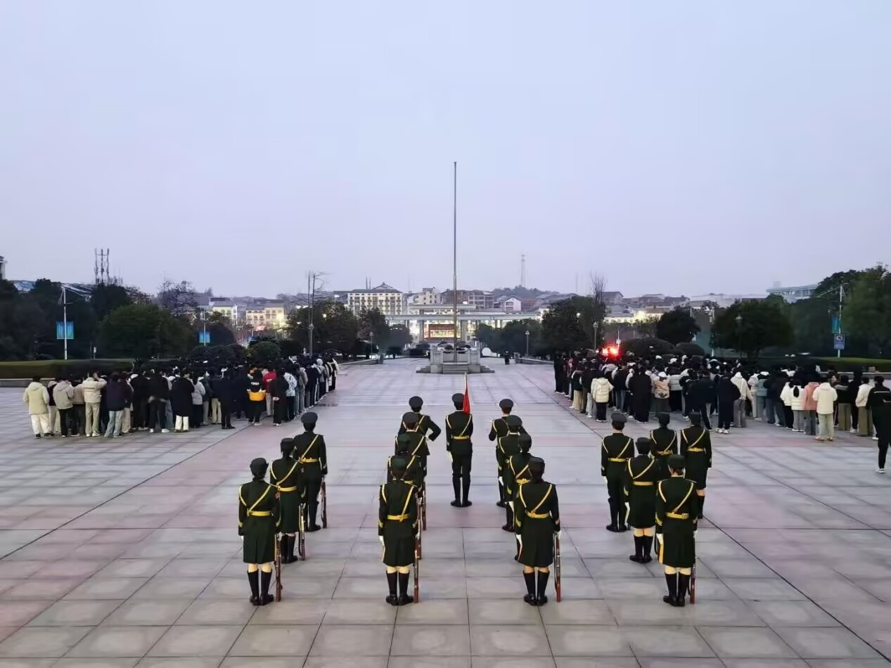 当第一缕晨光洒满大地,国歌奏响,全体师生庄严肃立,将视线投向冉冉升起的五星红旗。肃立凝视间,崇敬与自豪油然而生。